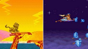 On ne les présente presque plus, et pourtant… Je vais tout de même m’apprêter à le faire. Acclamés à leur sortie, respectivement en 1993 et 1994, Aladdin et Le Roi Lion font désormais partie des classiques des jeux de plates-formes de l’ère des 16 bits. Et c’est sous forme de compilation qu’ils nous reviennent cette année, soit 25 ans plus tard, pour rendre hommage à ces titres de Disney. Ce dernier, profitant de la vague de remasters et remakes dont cette année a été particulièrement riche (Medievil, , , The Legend of Zelda : Link’s Awakening sont certains des titres que nous avons pu testé dans le MOIS qui vient de s’écouler…), tire donc sur la corde de la nostalgie en nous proposant cette compilation. Mais est-ce suffisant ? C’est ce que je vais essayer de voir dans les lignes qui suivent.