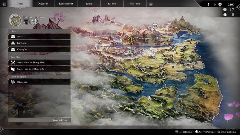 Par conséquent, ils ont tenté de varier le rythme en sortant des étendards de la guerre. C’est ainsi qu’il est possible de prendre quelques temps de répit. Cela se traduit par une exploration d’une carte de la Chine, à travers voies maritimes, prairies et montagnes, sur lesquelles sont représentées les différents points d’intérêts et de conflits. Cela renforce la narration, et malheureusement le studio en a profité pour intégrer des quêtes parfois inintéressantes, du moins sans aucune plus-value scénaristique ou mécanique.