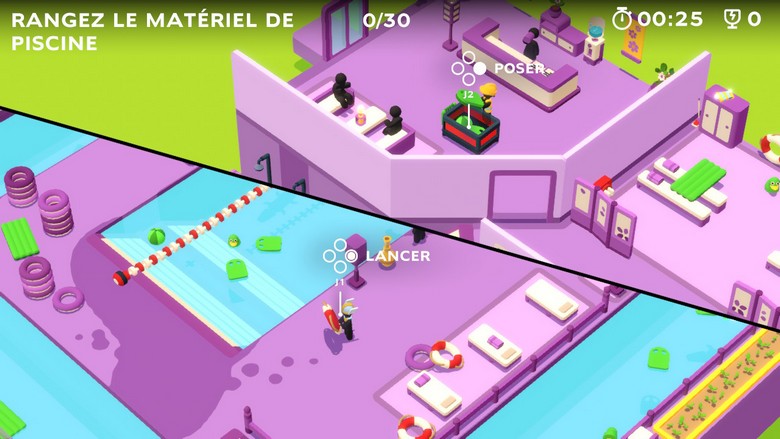 Bien que le titre vous demandera parfois de vous creuser un peu les méninges pour venir à bout de certaines situations, ou pour trouver la meilleure technique à mettre en œuvre, le gameplay se montre instinctif : la prise en main est instantanée et c’est au niveau de l’exécution qu’il faudra faire attention. Par contre, il est dommage que les tâches des niveaux ne se valent pas : tantôt très sympa, comme lorsque l’on doit lancer un projecteur d’un bout à l’autre d’une pièce, soit très rébarbative, comme lorsqu’on doit arroser des fleurs pendant 10 minutes…