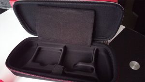 A l’intérieur, le constat est grosso modo le même : Bigben n’a pas lésiné sur les détails. Le revêtement intérieur est une sorte de velours doux qui ne maltraitera pas le contenu placé à l’intérieur de l’objet, même remarque avec la pochette intermédiaire qui possède ce même velours au niveau du contact avec l’écran et qui est composé d’un filet en tissu avec une texture de type mousse synthétique sur le devant. Disposant d’une fermeture, la pochette en question ne laissera pas se balader vos accessoires en cas de transport un peu chaotique.