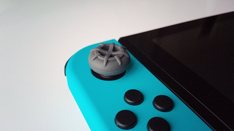 Parmi les autres accessoires fournis, il y a également un lot de deux petits bouchons en caoutchouc prévus pour recouvrir les joysticks de vos Joy-Cons. Épais et un peu durs, leur installation peut devenir compliquée, surtout si vous avez peur de brusquer les joysticks déjà fragiles des Joy-Cons de Nintendo. Toutefois, en les posant sur le côté et en les tournant doucement sur eux-mêmes afin de rabattre les bords, l’opération s’avère un peu plus aisée. Même si on peut déplorer leur aspect visuel un peu « bourrin », et qu’il existe des modèles plus fins et élégants sur le marché, il faut avouer que l’ajout de ces petits bouchons est un vrai plus sur le plan ergonomique.