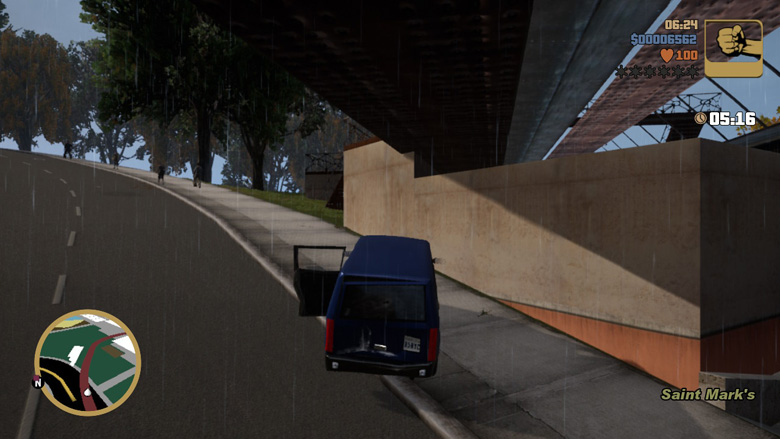 Du côté du moins bon : des bugs d’affichage, avec votre personnage qui passe à travers portières et objets, la pluie qui traverse les abris, les textures très inégales sur les personnages et une playlist qui se voit écourtée de quelques morceaux pour cause de … on ne sait pas en fait. Ajoutons une maniabilité assez aléatoire, prendre un virage en voiture n’est pas toujours simple, alors à grande vitesse et un système de visée certes revu mais à la manette c’est toujours une horreur. Et puis ça clip autant que pendant boulevard des hits. Désolé pour cette référence de boomer mais avec une distance d’affichage n’ayant plus de limite, voir les véhicules apparaitre par magie à 20m est toujours une surprise. Sans déconner ça clip même quand vous sortez de votre véhicule.