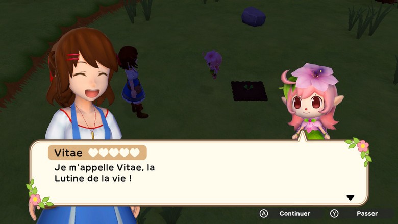 Dans ce Harvest Moon : Un Monde à Cultiver, la Déesse des Récoltes est endormie depuis des années, laissant le monde sombrer dans l’oubli des connaissances sur les cultures, et même sur l’existence de certains aliments. Le seul légume que vous connaissez : la pomme de terre. C’est d’ailleurs le seul présent dans ce monde. C’était sans compter sur l’intervention d’une petite fée, répondant au nom de Vitae, qui vous apprendra l’existence de la Déesse des Récoltes et la façon de l’éveiller : il faudra retrouver les cinq lutins dispersés dans chacun des cinq mondes présents dans le titre. Chacun d’eux, tout comme Vitae et de nombreux « Feux follets », enrichira votre savoir sur la pousse des légumes, fruits et autres plantes via des graines à cultiver, qui viendront peu à peu compléter votre glossaire. A noter que ces graines varient selon l’heure et la saison. Vous pourrez également rencontrer tout un panel d’animaux que vous pourrez finir par accueillir dans votre étable… ou simplement vous lier d’amitié avec eux en les caressant. Pour ce faire, des petites notes de musique se remplissent au fur et à mesure de l’affection qu’on leur apporte. Mais ce n’est pas tout, vous rencontrerez également des PNJ qui vous confieront des quêtes à accomplir afin d’appréhender toutes les options possibles du titre. Vous pourrez également tisser des liens avec ces derniers, voire de trouver l’amour avec l’un ou l’une des prétendant(e)s disponibles (à noter toutefois que les relations entre personnages de même sexe ne sont pas disponibles. On vous conseille donc de consulter la liste des différents prétendants AVANT de choisir le sexe de votre avatar).