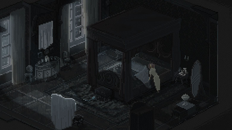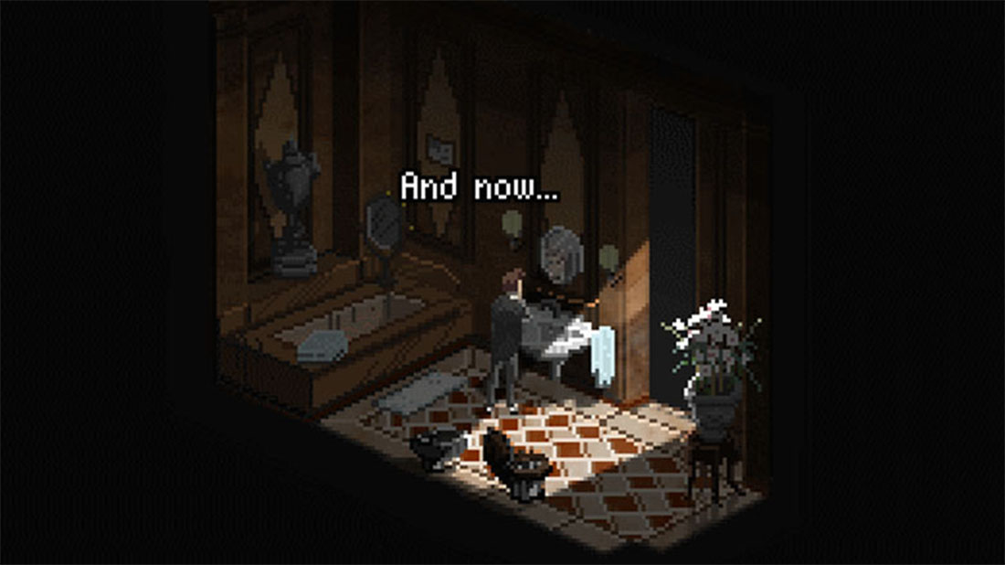 Pour ce qui est du Pixel Art, le jeu est esthétiquement très beau et démontrent que l’artiste maitrise bien son art. Chaque scène est réduite à son stricte minimum, mais tout est pensé dans les moindres détails et on apprécie découvrir les différents tableaux, malgré l’ambiance oppressante qui peut régner. Si le style ne plaira pas à tout le monde, les amateurs de Pixel Art devraient être ravis. Le jeu est accompagné par une bande-son envoutante, certes libre de droit, mais dont chaque morceau collent parfaitement avec le tableau dans lequel il est intégré.