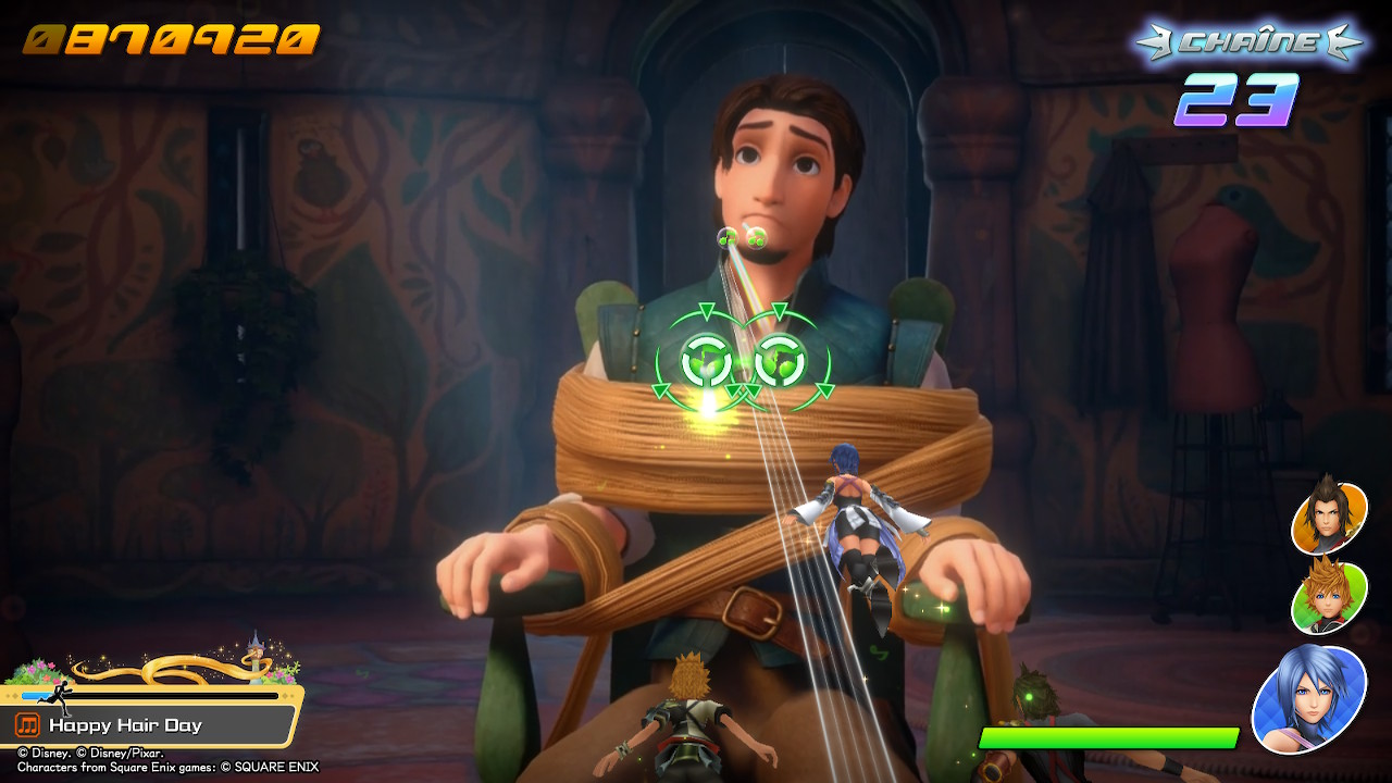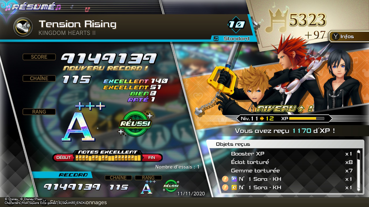 Enfin, en ce qui concerne l’aspect plus graphique, on va dire que le minimum syndical a été respecté et que la carte de la nostalgie a été jouée à fond. Les mondes qui défilent en fond sont ceux issus des différents jeux de la série, ce qui engendrera peu de surprises. Au même titre, les modèles 3D des personnages sont exactement les mêmes. Cependant, on pourra regretter ce qu’ils ont fait de Kingdom Hearts III, puisque ce dernier n’a le droit qu’a une demi-douzaine de morceaux, tous sans exception sous la forme de « Plongée mémorielle ». Un peu décevant quand on sait le nombre de morceaux et de réorchestration que le titre possède. Mais il y a fort à parier que des DLC futurs viennent potentiellement régler ce souci !