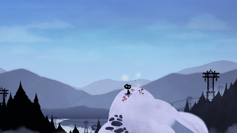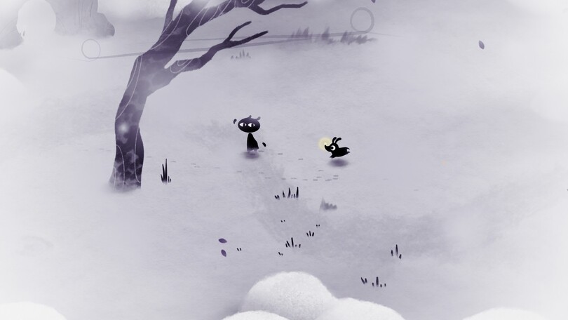 L’ambition du studio Tolima de proposer des expériences émotionnelles poétiques repose ici en grande partie sur la direction artistique et l’ambiance sonore. En optant pour un style visuel minimaliste, TOLIMA propose une expérience qui pourra rappeler les illustrations de livres pour enfants. Les personnages et animaux rencontrés au fil du jeu sont représentés sous forme de silhouettes noires, ponctuées de quelques détails et surtout d’yeux expressifs. Cette approche épurée parvient, malgré son apparente simplicité, à transmettre une large palette d’émotions. Tout simplement parce que le trait est très joli et travaillé du premier au dernier plan.