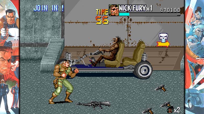 Honneur à celui-ci donc qui se démarque de ses petits camarades. Les amateurs des récents Street of Rage 4 et TMHNT trouveront ici leur petit plaisir. Dans le rôle du Punisher ou de Nick Fury, il faudra remonter la piste du Caïd à coup de high-kick, grenades et flingues, nos héros se servant de leurs armes uniquement quand les ennemis en sont équipés eux-même.