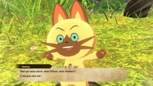 Et si le « chat », nommé Navirou, parle et parle put@!n de beaucoup, ce n’est absolument pas le cas de votre personne qui rejoint la longue liste des héros muets, ce qui, pour un jeu qui contient RPG à la fin de son genre, fait toujours un peu tâche. Car tous les dialogues sont menés par le griffeur de canapés (sans aucun choix vous êtes dans un J-RPG) et c’est lui qui prendra toutes les décisions, laissant à Red le sourire validant la prise de décision qui va toujours vers l’aide au prochain.