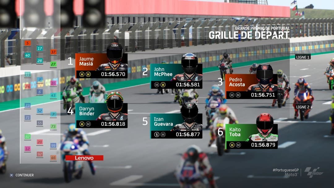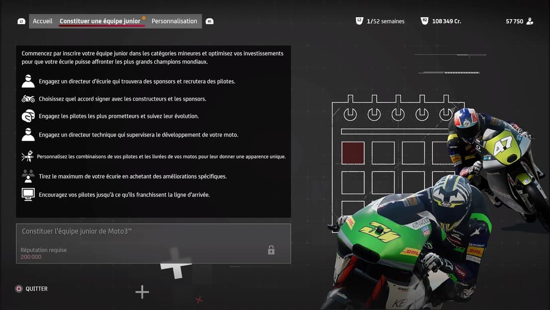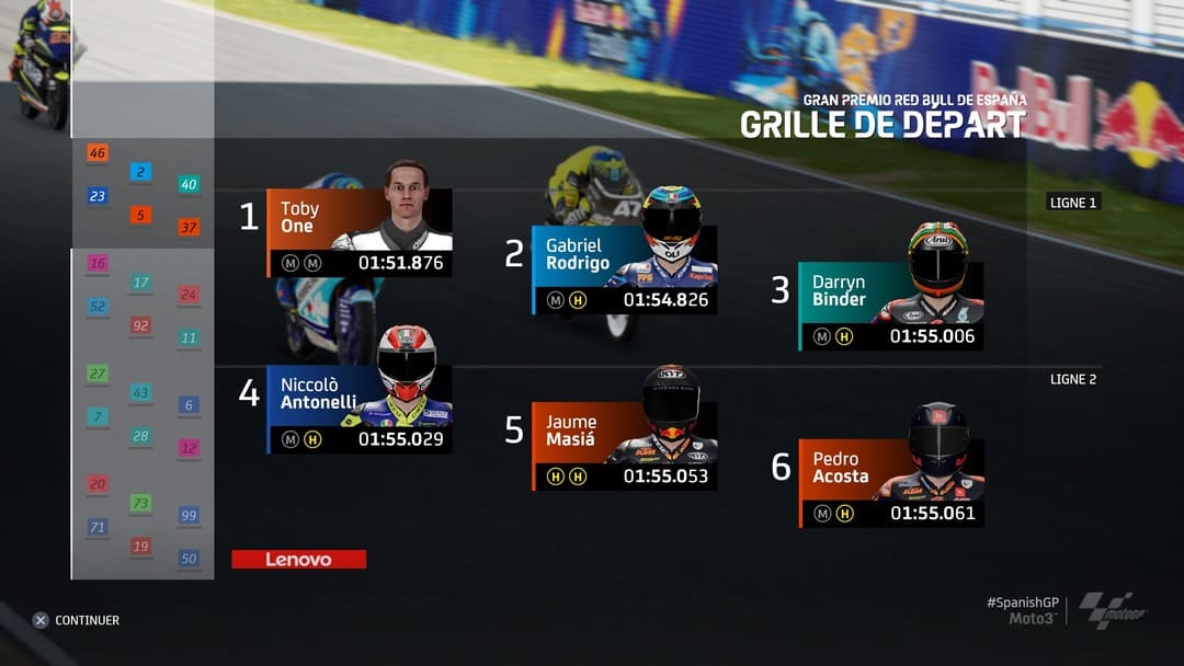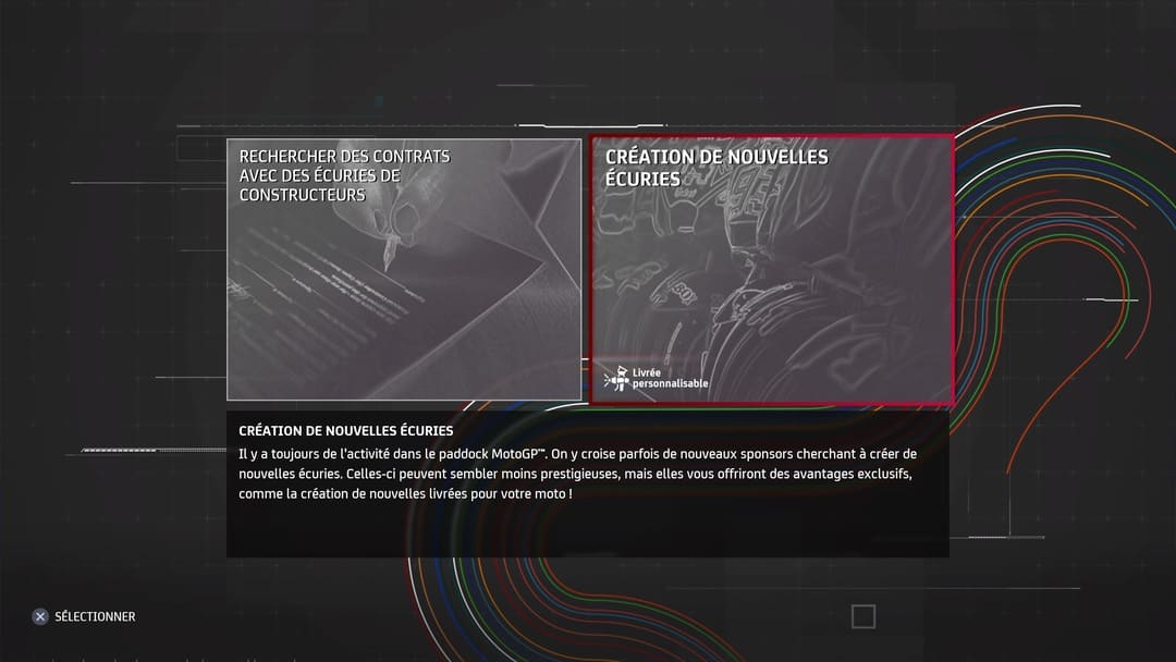 S’il est sympathique et plus que logique de retrouver un mode Contre-La-Montre, un mode Championnat ainsi que du Multijoueur (on fera une MAJ du test, une fois testé pleinement) ou de la Course libre, il est logique de se diriger naturellement le mode Carrière qui nous fera commencer la course par la catégorie Moto 3. De nombreux choix seront à effectuer dès les premières minutes, à savoir l’agent qui vous accompagnera à vos débuts, quel sponsor et évidemment pour quelle écurie vous roulerez. D’ailleurs, toutes les écuries sont présentes, tous les pilotes aussi. On aimerait un jour avoir des légendes des précédentes décennies au casting mais ce ne sera pas pour cette année.
