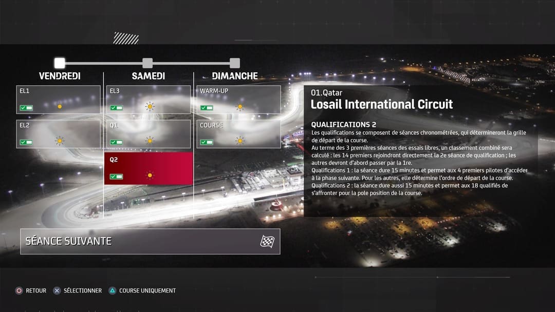 Les semaines passent et le jour J arrive à grand pas. Le premier GP vous laisse d’emblée le choix. Participerez-vous au week-end entier de courses ? Il est donc possible de rouler dès les Essais Libres (3 séances !), les qualifs (2 séances !) et même le Warm-Up pour être enfin prêt à se lancer dans la course, au mieux sur la première ligne. Rouler autant servira votre cause. Le staff pourra ainsi s’adapter à vos sensations de course, c’est-à-dire effectuer quelques changements sur la moto. Cela se traduit par une interface via différents onglets, divers secteurs que vous pouvez tester en profondeur pour analyser ce qui vous permet de réaliser le meilleur temps. Démonstration en vidéo de gameplay dans MotoGP 21.