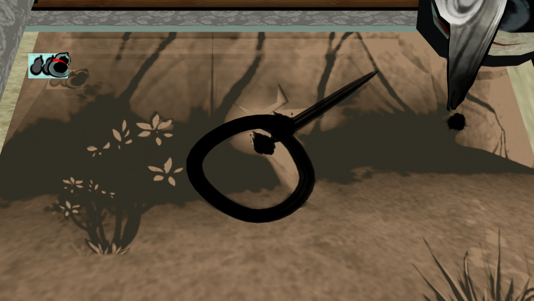 La particularité d’Okami, en dehors de son style graphique fabuleux, que nous aborderons un peu plus tard, c’est son gameplay. Car ici, point d’épée ou de pistolet pour vous débarrasser des ennemis, mais un Pinceau Céleste, qui vous permet de faire à peu près n’importe quoi.