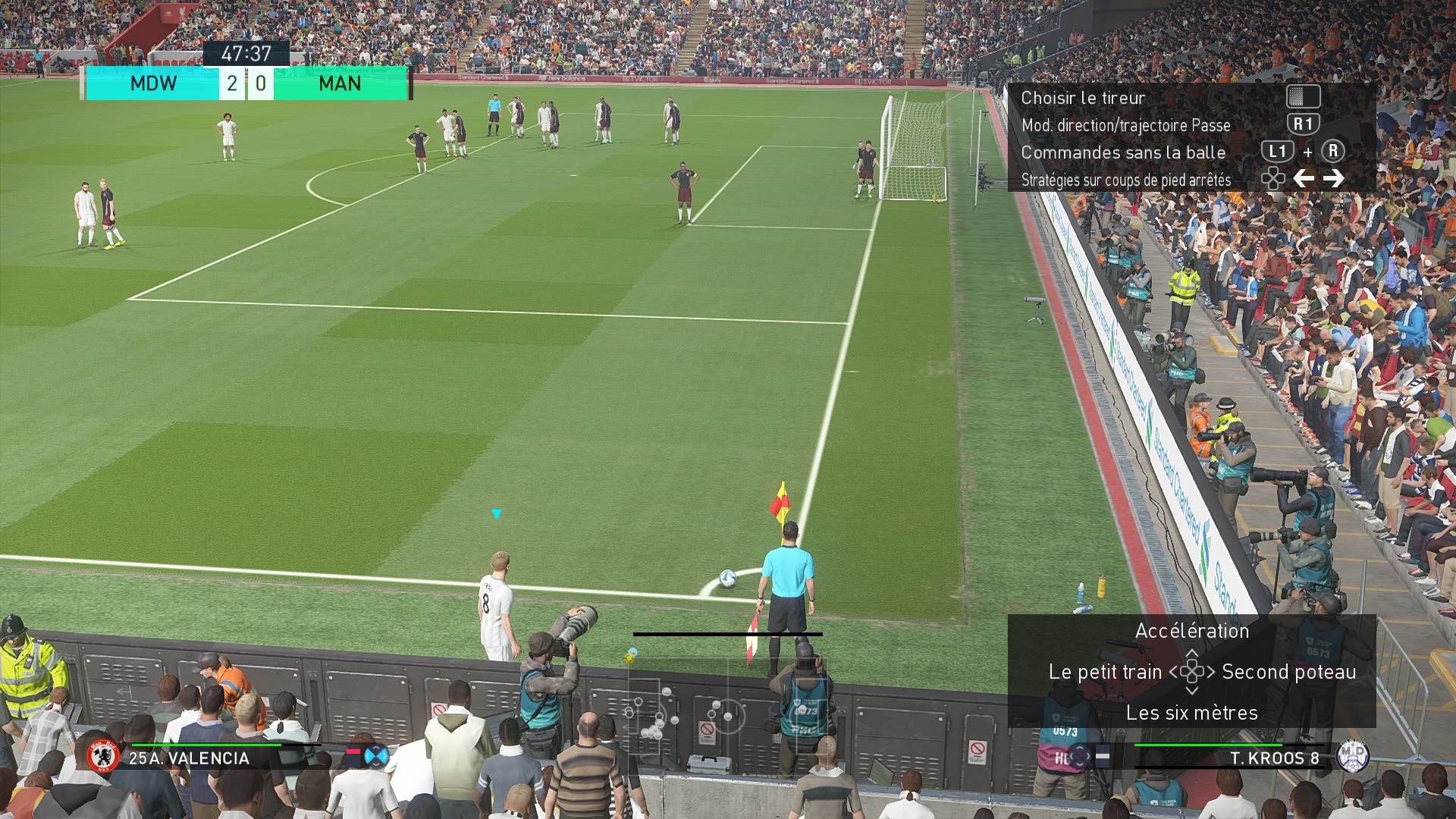 Au niveau des coups de pied arrêtés, il est possible d’opérer certaines stratégies, de prendre le contrôle du receveur ou encore de changer de caméra. Tout ceci profite à une action plus réfléchie laissant de moins en moins de place au hasard et un meilleur contrôle de votre action. En revanche, les stratégies de jeu ne sont pas nombreuses et surtout elles sont sélectionnables lors de la confection de votre plan de jeu. Vous avez donc intérêt à avoir une bonne mémoire pour retenir quelle stratégie vous avez attribuée à quelle touche. Jusqu’à quatre stratégies, deux d’attaque et deux de défense sont paramétrables, cela n’a pas changé depuis des années. C’est bien dommage que Konami n’ait pas fait l’effort de renouveler ceci ou du moins le simplifier. En gros, les fans de la licence ne seront pas dépaysés alors que les autres risquent de trouver cela un peu complexe. En conclusion, PES 2018 fait dans l’essentiel et propose un gameplay qui ira à tout type de joueurs.