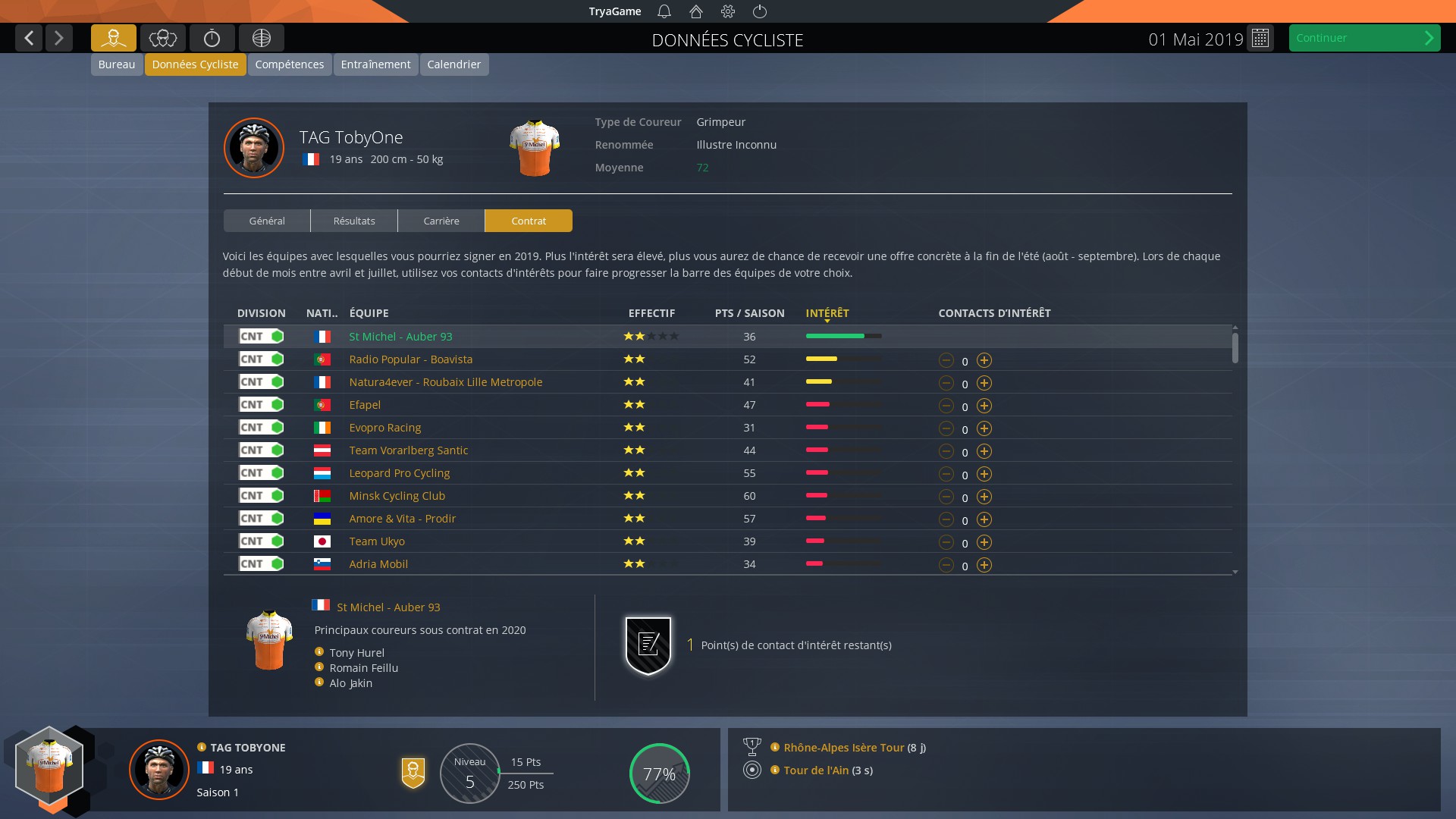 Pro Cycliste dans Pro Cyclist Manager 2019, la continuité