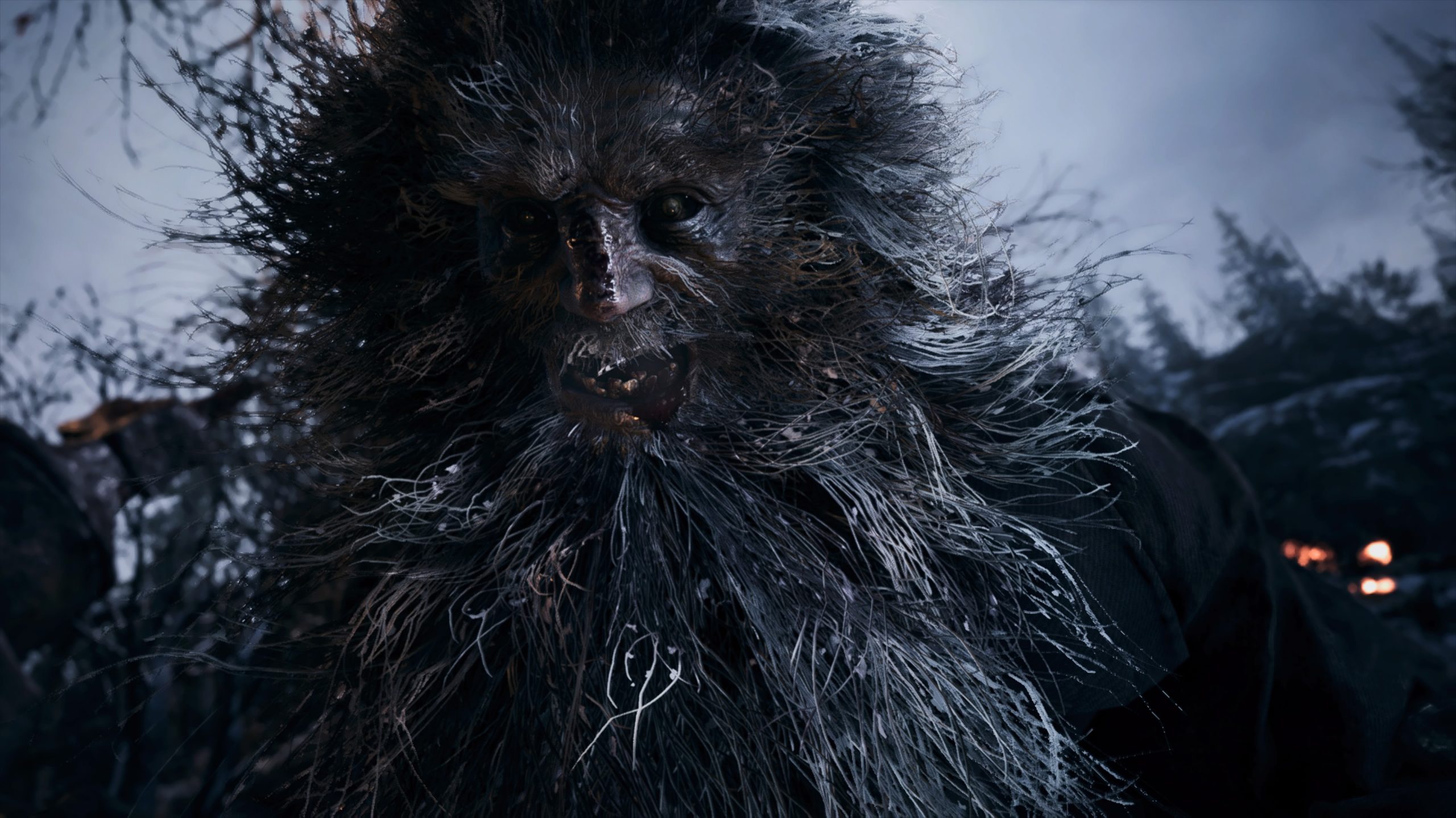 Parlons dans un premier temps de ce mode 3e personne. Ces dernières années, j’avais énormément apprécié les remakes de Resident Evil 2 & 3. Il faut dire que Capcom avait fait un excellent travail pour donner une seconde jeunesse à ces opus. C’était donc empli d’une très impatience que j’ai lancé une nouvelle partie de ce Resident Evil Village. Mais après l’excitation des premières minutes et l’idée de découvrir le jeu sous un nouvel angle, on se rend petit à petit compte qu’il y a quelque chose qui cloche. Et pourtant, le jeu est tout à fait faisable dans ce mode, mais la mise en scène n’a en fait pas bougé d’un poil. Du coup, ce qui était adapté à une vue FPS, ne l’est pas forcément à une autre caméra. Alors attention, encore une fois, le jeu est tout à fait faisable et reste très agréable à parcourir. À noter que les cinématiques, quant à elle, sont restées dans leur état d’origine, vous faisant switcher entre la caméra à l’épaule et les yeux d’Ethan. Est-ce qu’on ne peut pas déjà considérer ce parti-pris comme un petit aveu d’échec ? En tout cas moi, je le pense. Prenons un exemple, qui sera peut-être plus parlant. Au début du jeu, Ethan est transporté en camion. Mais ce dernier a un accident en plein milieu de la cambrousse roumaine. Déboussolé et désorienté, il va devoir se frayer un chemin dans la nuit noire pour arriver au fameux village. Cette séquence assez angoissante installe normalement une ambiance très oppressante avec des bruits aux alentours, des créatures qui passent à quelques centimètres de vous sans vous toucher, des branches qui craquent, etc. Dans le mode 3e personne, j’ai trouvé que ces éléments de mise en scène sont nettement amoindris, dû notamment à cette caméra lointaine. On comprend d’ailleurs un peu moins ce qui se passe, car, justement, tout était pensé à la base pour être vu à travers les yeux d’Ethan. J’ai donc tout de suite compris que le jeu allait être nettement moins effrayant dans ce mode de vue.