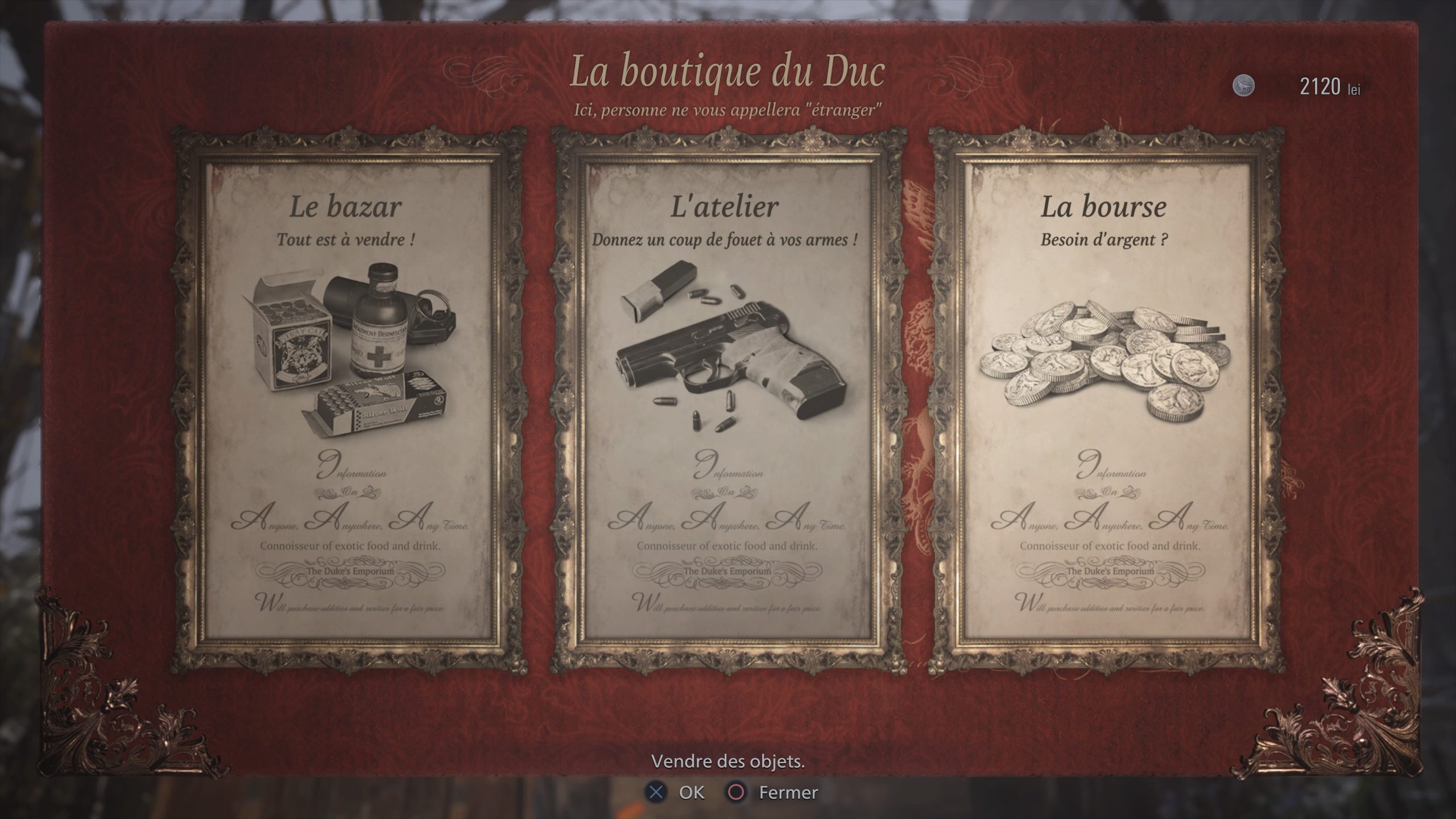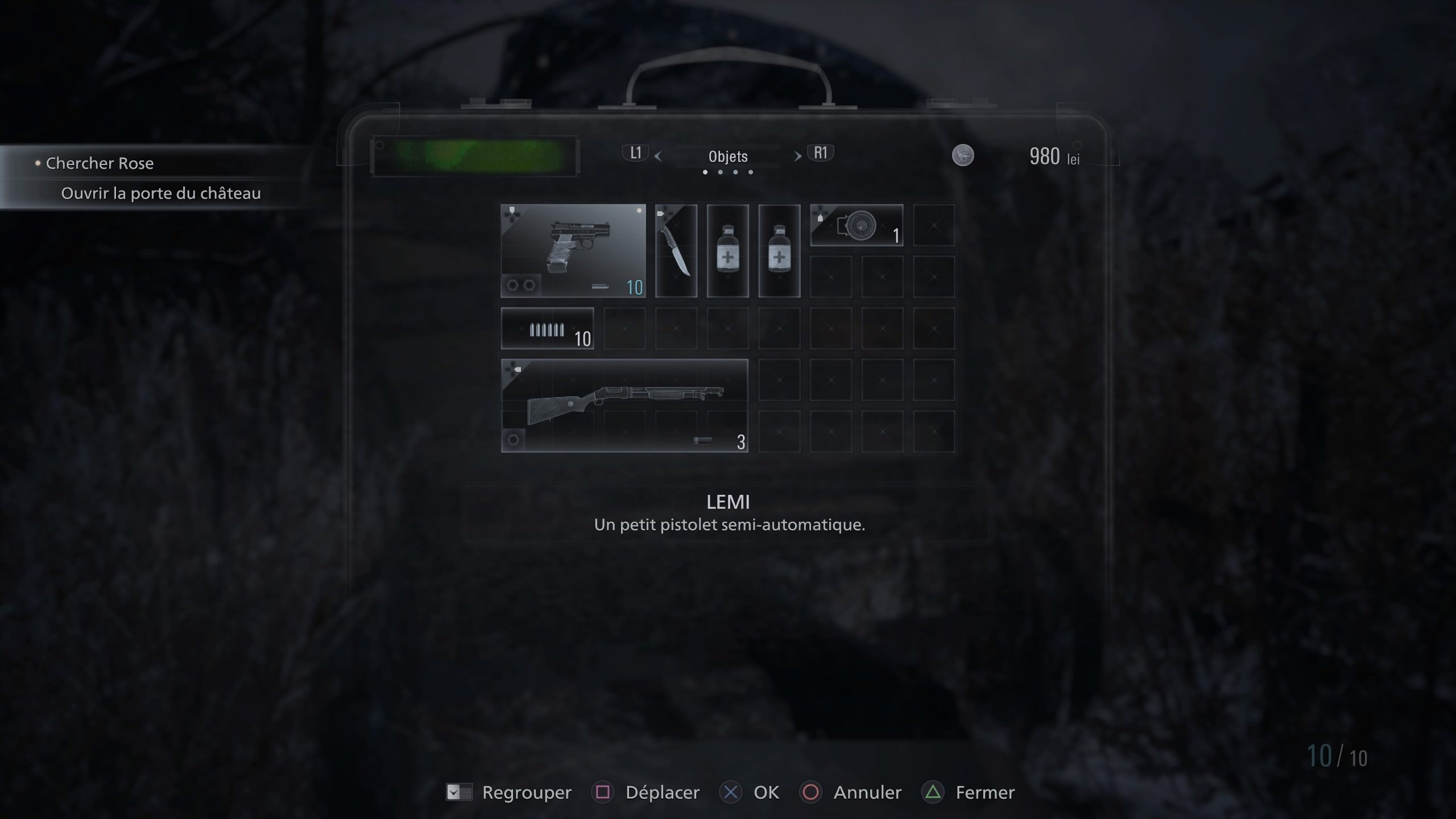 Dire que cet épisode est inspiré de RE4 serait un euphémisme tant de nombreuses mécaniques de gameplay semblent tout droit tirées de l’épisode sorti en 2005. L’ampleur de la parenté vous sautera aux yeux pas plus tard qu’après la première ouverture de l’inventaire, puisque Resident Evil Village signe le grand retour de l’inventaire quadrillé, sous forme de valise. Une infamie diront les puristes qui ne jurent que par les coffres, tandis que les plus ouverts d’esprit y verront une mécanique permettant une plus grande liberté, qui supprime par la même occasion de fastidieux allers-retours. De toute façon, avec sa structure plus « ouverte » (notez les guillemets), le jeu en possède déjà bon nombre. On notera cependant qu’il est difficile de manquer de place si vous améliorez régulièrement la taille de votre valise. C’est dommage, car le pur aspect « gestion de l’inventaire » est donc secondaire et vous serez moins amené a « jouer à Tetris » avec votre équipement qu’à l’époque.