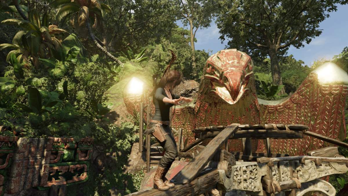 En ce qui concerne la survie, nous n’avons pas énormément de changements dans les mécaniques de jeu. Par contre, l’évolution de la série se situe sur la faune de cette jungle que traversera Lara Croft dans Shadow of the Tomb Raider. En plus de l’armée des trinitaires ou des populations tribales, elle devra affronter des adversaires coriaces, des animaux sauvages et souvent en meute. Vous avez aperçu le fameux jaguar, il ne sera pas le seul et ses déplacements seront bien plus difficiles à contrer que des soldats classiques. Les loups seront aussi de la partie même si leurs attaques sont similaires aux jaguars, ils traînent en meute et il sera nécessaire d’adopter un timing parfait pour s’en débarrasser. Nous évoquions l’exploration sous-marine, elle comportera aussi ses risques avec des murènes qu’il sera possible de contrer et des piranhas qui ne vous laissent pas cette chance. Hormis cela, Lara Croft montrera aussi que la loi du plus fort domine dans la jungle. Entre les oiseaux, les bichettes, les poules et d’autres, tous pourront tomber sous le coup de ses flèches. Mention spéciale au lama qui se distingue dans les élevages mayas.
