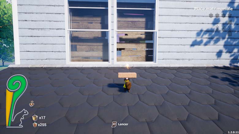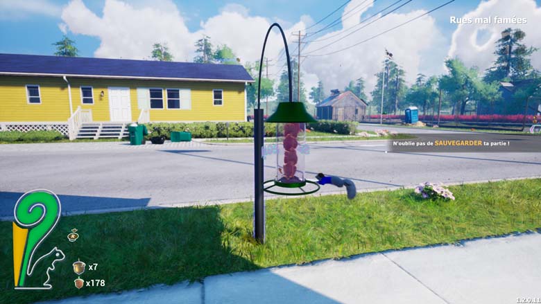 Notre écureuil sait monter sur les gens pour leur coller un torticolis de la mort (littéralement) ; les arbres, les poteaux notamment ceux avec un drapeau qui feront l’inventaire des choses à débloquer dans la zone.