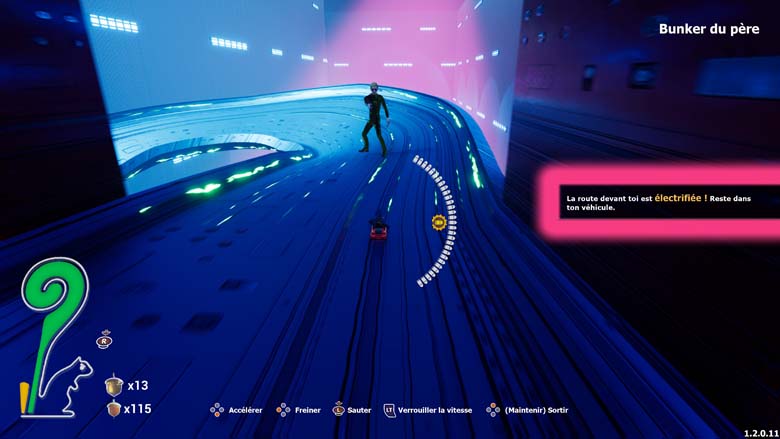 Non, vous ne passerez pas votre temps à défourailler du personnage random à l’arme lourde. Il vous faudra en fait réfléchir. Sorti du labo servant de tutoriel, vous voilà dans un quartier résidentiel libre de vos mouvements où chaque maison abrite bonus, glands dorés et costumes qui ne sont pas là juste pour le côté cosmétique. En effet ceux-ci peuvent vous renforcer ou débloquer des énigmes.
