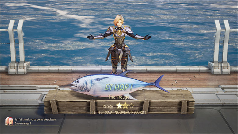 Les fans de pêche seront également aux anges, Tales of Arise en propose, et les développeurs semblent d’ailleurs avoir pris ça très au sérieux au vu du gameplay précis et parfaitement réglé qui vous fera suer quelques gouttes quand viendra le moment de tomber sur un poisson légendaire avec votre canne de débutant. Et on rigolerait à moitié en vous disant que certains sont de véritables boss secondaires. Il est également possible de cuisiner pour vos personnages lors de chaque passage dans un feu de camp ou une auberge, ce qui permettra de leur attribuer divers bonus de combat ou d’exploration.