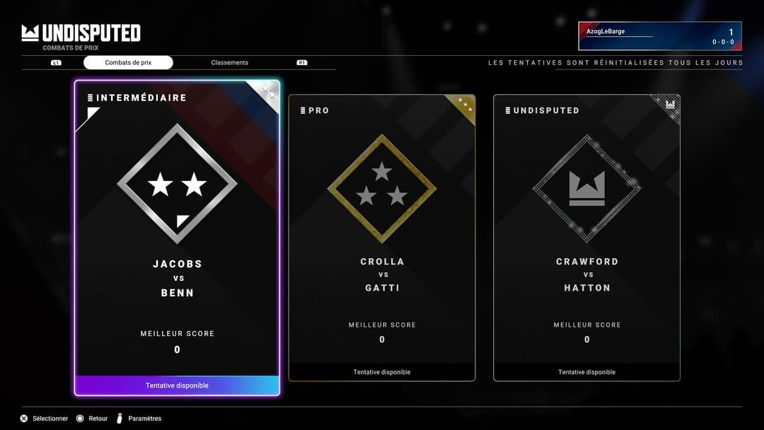 Undisputed propose trois voies pour enfiler les gants de boxe. Le mode Carrière dans lequel on pourra créer son avatar, ou choisir un boxeur de renommée. On commence en bas de l’échelle et on monte au classement au fil des victoires. Mais ce n’est pas qu’une histoire de combats, la préparation importe aussi ainsi que votre entourage.