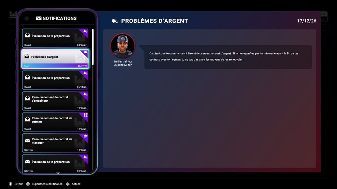 Il faut ainsi faire attention au temps de préparation pendant la signature du contrat, et penser à faire autre chose que des apparitions sur les réseaux sociaux ou dans les lignes d’un journal. Mais pour gagner en popularité, il ne faut pas non plus négliger cet aspect. Les nombres d’exercices sont au nombre d’une dizaine, et l’impact sur la forme du boxeur est affiché avec des lignes de stats.