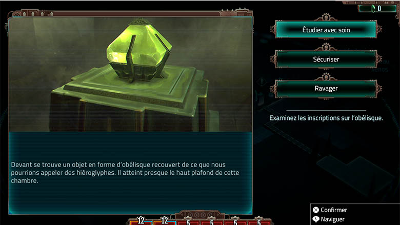 Dans le jeu, nous adoptons toujours une vue du dessus, que ce soit en combat ou lors de l’exploration. Dans ce dernier cas de figure, nous devons déplacer toute une escouade sur une carte de salle en salle et dans chacune d’entre elles, il nous faudra résoudre des petits scénarios faisant penser aux jeux de rôle papier. On nous décrit une situation, trois choix s’offrent à nous et en fonction de celui-ci, on peut se retrouver avec des unités qui subissent des dégâts ou bien gagner des points de capacité, ce qui nous permet d’appréhender les combats d’une toute autre manière. Ce système est sympathique à prendre en main et apporte un peu de fraîcheur au jeu, permettant d’alterner entre deux phases de combats durant lesquels on retrouve un gameplay de jeu de stratégie basique avec une vue isométrique